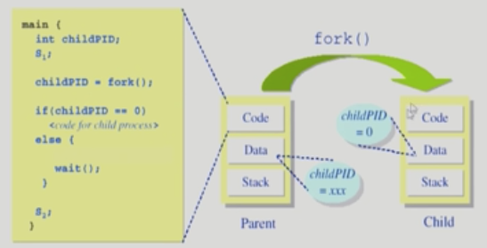 ์์ ํ๋ก์ธ์ค๋ ๋ถ๋ชจ ํ๋ก์ธ์ค์ ๊ณต๊ฐ์ ๋ณต์ฌํ๊ณ ๋ณต์ฌํ ๊ณต๊ฐ์ ์๋ก์ด ํ๋ก๊ทธ๋จ์ ์ฌ๋ฆฐ๋ค. ์ ๋์ค์์๋ fork() ๋ผ๋ ์์คํ ์ฝ๋ก ๋ณต์ฌ๋ฅผ ํ๊ณ exec() ๋ผ๋ ์์คํ ์ฝ๋ก ์๋ก์ด ํ๋ก๊ทธ๋จ์ ๋ฎ์ด ์์ด๋ค. ์ฆ, ์ฌ์ฉ์ ํ๋ก์ธ์ค๊ฐ ๋ค๋ฅธ ์์ ํ๋ก์ธ์ค๋ฅผ ์์ฑํ ๋ ์ด์์ฒด์ ์๊ฒ ์์ฒญํด์ ์์ฑํจ.