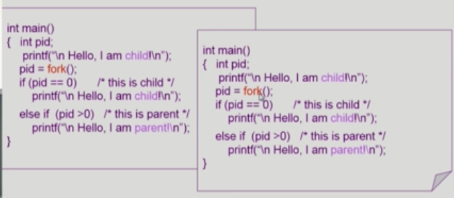 ์ ์ฌ์ง์ฒ๋ผ fork() ํธ์ถ๋ ์์ ์์ ๋ฌธ๋งฅ์ด ๊ทธ๋๋ก ๋ณต์ฌ๋๊ณ , ๋ฌธ๋งฅ์ด ๋ณต์ฌ๋ ๊ฒ์ด๋ฏ๋ก ์คํ ์์ (PC)๋ ๋ณต์ฌ๋์ผ๋ ์ฒ์๋ถํฐ ์คํ๋๋ ๊ฒ ์๋๋ผ fork() ๊ฐ ํธ์ถ๋ ํ์ ์์ ์์ ์์ ํ๋ก์ธ์ค๊ฐ ์คํ๋๋ค. ์ฆ fork() ์๋ถ๋ถ์ printf ๋ถ๋ถ์ ์์ ํ๋ก์ธ์ค๋ ์คํํ์ง ์๋๋ค. fork() ์ return value ๊ฐ ๋ค๋ฅด๋ฏ๋ก ๋ถ๋ชจ/์์ ํ๋ก์ธ์ค๋ฅผ ๊ตฌ๋ถํ ์ ์๋ค.