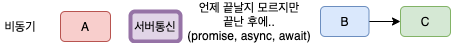 κ·Έλ¬λ λΉλκΈ° ν΅μ μ λκΈ°μ μΌλ‘ μννκ³ μ awaitμ λΆμμΌλ, μλ²μ λ°μ΄ν°λ₯Ό λ°μμ€λ λμμλ μμ μ΄ μΌμμ€μ§λλ€.