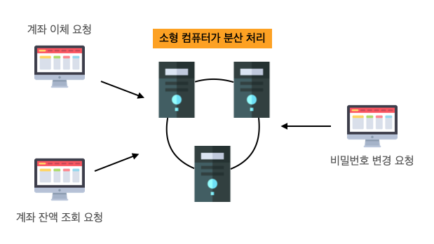 - ์ ๋ถ ์ฐ๊ฒฐ๋์ด ์์ผ๋ฏ๋ก ํ ๋๊ฐ ๋ง๊ฐ์ง๋ฉด ์ํฅ ๋ฒ์๋ฅผ ์ต์ํํ๊ธฐ ์ํ ์๋ฒ๋ณ ์ญํ ๋ฐ ๊ตฌ์กฐ๋ฅผ ๊ฒํ ํด์ผ ํ๋ค.