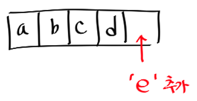๋ฐฐ์ด์ ๋ฏธ๋ฆฌ ๊ณต๊ฐ์ ํ๋ณดํ๊ธฐ ๋๋ฌธ์ ์ ํ์ ์ธ ๊ณต๊ฐ ์์์ insert ์์ ์ด ์ด๋ฃจ์ด์ง๋ค. ๋ฐฐ์ด์ ๋น ๊ณต๊ฐ์ด ์๊ณ ๋งจ ๋ง์ง๋ง์ ๋ฃ์ผ๋ฉด ๋๋ ๊ฒฝ์ฐ์๋ ๋์ ๋ฐ๋ก ๋ถ์ด๋ฉด ๋๋ค. ๋งจ ๋์ ์ธ๋ฑ์ค๋ ๋ฐฐ์ด์ ๊ธธ์ด๋ก ์ฝ๊ฒ ์์๋ผ ์ ์์ผ๋ ์์ํ ์์ ์ด๋ค.