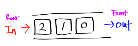 맨 λ€(rear)μ λ°μ΄ν°λ₯Ό μΆκ°νλ€. rear μ λ³΄λ§ μ²΄ν¬νλ©΄ λλ―λ‘ O(1) μ μκ°λ³΅μ‘λλ₯Ό κ°μ§λ€.