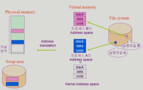 ๋ณดํต ํ๋ก๊ทธ๋จ์ ์คํ ํ์ผ ํํ๋ก ํ๋๋์คํฌ์ ์ ์ฅ๋์ด ์๊ณ ์คํ๋๋ฉด ๋ฉ๋ชจ๋ฆฌ์ ์ฌ๋ผ๊ฐ๊ฒ ๋๋ค. ๋ฉ๋ชจ๋ฆฌ ์ฌ๋ผ๊ฐ ๋๋ 0๋ถํฐ ์์ํ๋ ๊ทธ ํ๋ก๊ทธ๋จ๋ง์ ๋ ์์ ์ธ Address space ๊ฐ ํ์ฑ๋๋ค. code๋ CPU๋ฅผ ์คํํ๋ ๊ธฐ๊ณ์ด ์ฝ๋๊ฐ ๋ด๊ฒจ ์๋ ๋ถ๋ถ์ด๊ณ data ๋ ํ๋ก๊ทธ๋จ์ด ์คํํ๋ ์ ์ญ ๋ณ์๋ฅผ ๋ด๊ณ ์๋ค. stack ์ ๋ณ์๋ ํจ์๋ฅผ ํธ์ถํ ๋ ํ๋ํ๋ ์์ผ๋ฉฐ ํธ์ถ ์์๋ฅผ ์ ์ดํ๋ค. ์ด Address space ์ ์ฒด๋ฅผ memory ์ ์ฌ๋ฆฌ๋ฉด ๊ณต๊ฐ ๋ญ๋น๊ฐ ๋๋ ๋น์ฅ ์คํ์ ํ์ํ ๋ถ๋ถ๋ง ๋ฝ์ ์ฌ๋ฆฌ๊ณ ํ์ํ์ง ์๋ ๋ถ๋ถ์ ๋ฉ๋ชจ๋ฆฌ์ ์ฐ์ฅ์ ์ธ Swap area๋ก ๋ด๋ฆฐ๋ค. ์ด๋ฌํ ๊ธฐ๋ฒ๊ณผ Address space ๋ฅผ ํตํ์ด ๊ฐ์ ๋ฉ๋ชจ๋ฆฌ ๋ฐฉ์์ด๋ผ๊ณ ํ๋ค. ์ฐธ๊ณ ๋ก Swap area ๋ ํ๋ฐ์ฑ์ด๋ค.